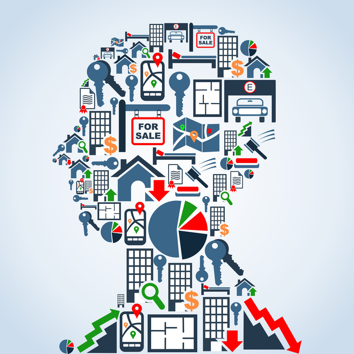 Real estate icon set in man head shape background illustration. Vector file layered for easy manipulation and custom coloring.